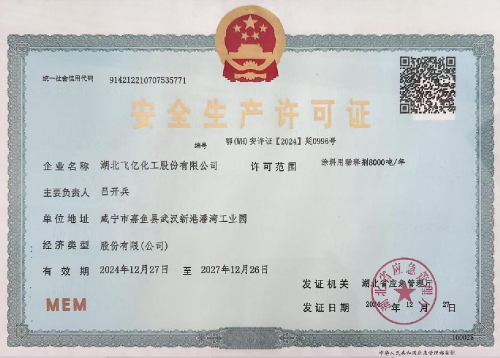 湖北飛億化工股份有限公司成立于2005年,專業從事各種油漆涂料稀釋劑的生產批發,經過公司全體員工的多年拼搏與努力,本著客戶至上、誠信至上、質量至上的三上原則和高素質、高效率、高品質的三高理念,公司在木器稀釋劑行業中取得了不菲的成績。在公司以批發為主的行銷原則下,在湖北、湖南、浙江、山東、山西、陜西、江西、貴州、廣西、廣東、安徽、河南、河北、江蘇、甘肅、青海、西藏、新疆等地建立了良好和健康的銷售網絡。湖北飛億化工股份有限公司以人為本、倡導學習。經過多年的凝聚和歷練,公司擁有豐富實踐經驗的技術人員和銷售、生產的團隊,不斷研發適合市場和客戶的高質量產品。并努力爭取各項產品和服務達到客戶滿意。為滿足市場和客戶要求,湖北飛億化工股份有限公司于2013年投資興建了占地30000平方的集生產、檢測、庫存于一體的現代化生產基地,公司熱忱歡迎有志之士與我們共同成長、共同壯大和共同發展。